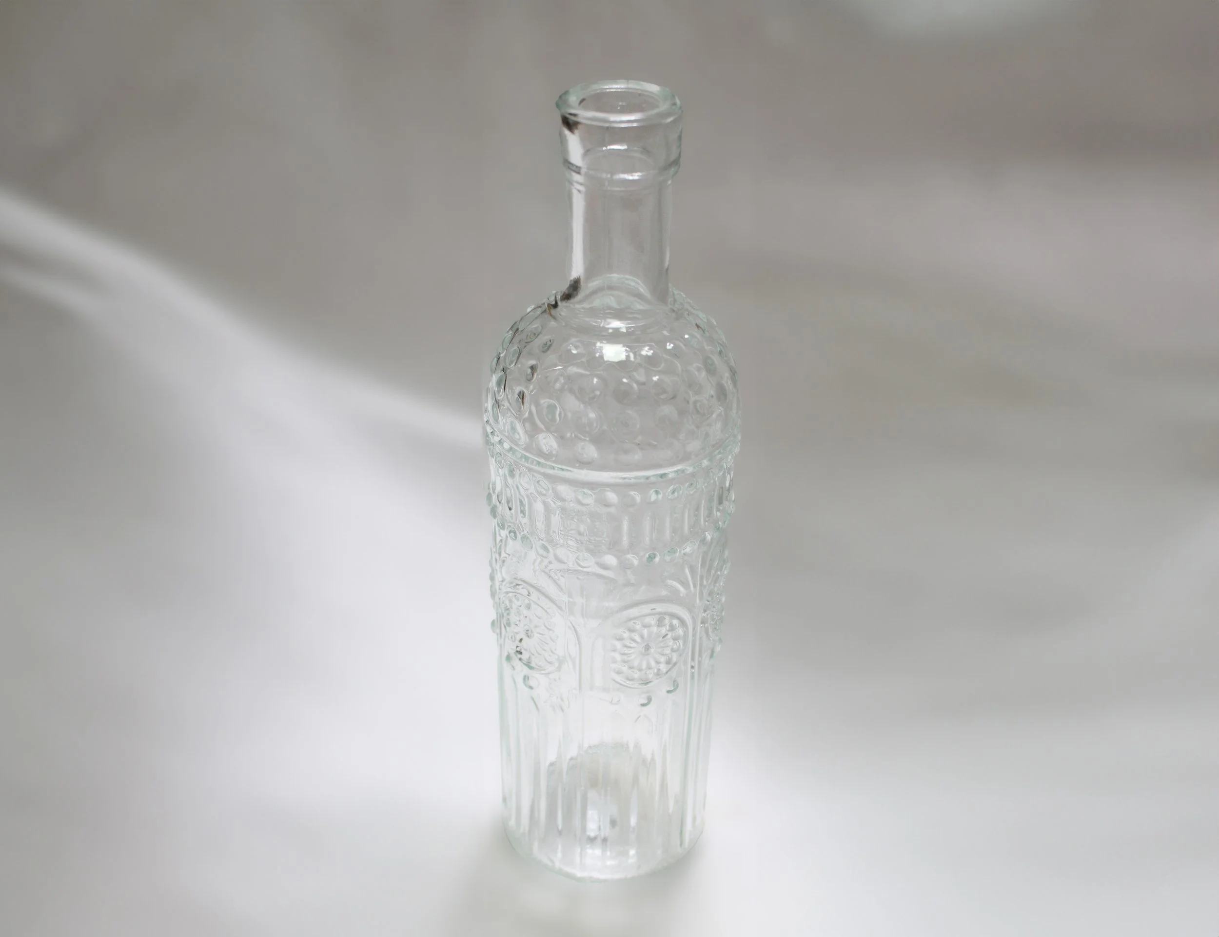Schöne verzierte Glasflasche als Dekoelement oder Vase